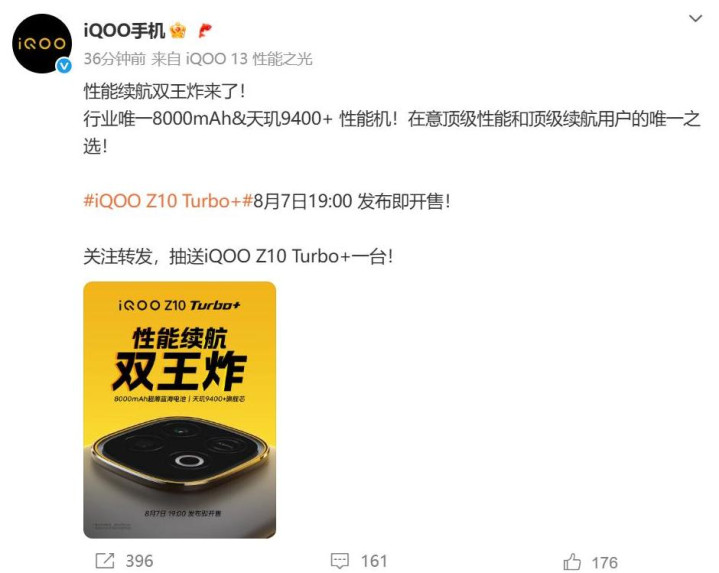 iqoo z10 Turbo+将在本月7日发布,官宣了两大核心配置,搭载天玑9400+旗舰处理器,并内置8000mAh大容量电池,为了让大家更清晰的了解总体配置,我根据爆料信息给大家盘点下细节。